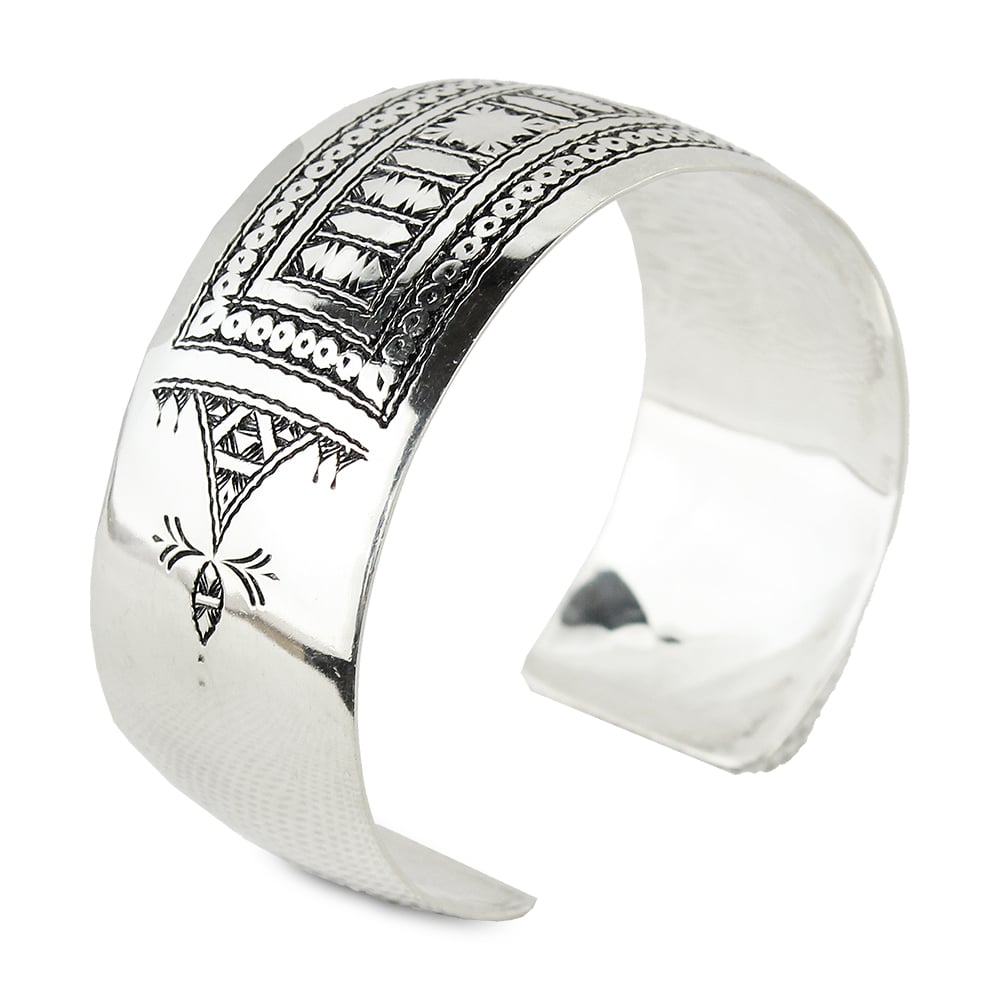 Esta pulsera de plata marroquí hecha a mano es un verdadero tesoro. Hecho a mano por talentosos artesanos, presenta un diseño tradicional con patrones intrincados y detalles exquisitos. Su finura y elegancia la convierten en una joya única que añadirá un toque de exotismo a tu outfit.