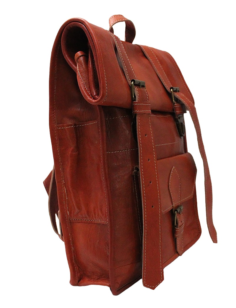 Mochila de piel auténtica color marrón para hombre y mujer. Piel de alta calidad con un diseño vintage y elegante.